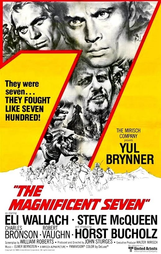 一群强盗每年都要骚扰墨西哥的一个小村庄。村里的长者派三名农夫去美国,目的是寻找武艺高强的枪手来保卫村庄。最后一共来了7名高手,他们去墨西哥的理由每个人都各不相同。他们人单力薄,要对付100多个前来掠食的强盗。经过一番激战,终于将盗贼歼灭,但七人中亦折损四人,令人伤感不已。